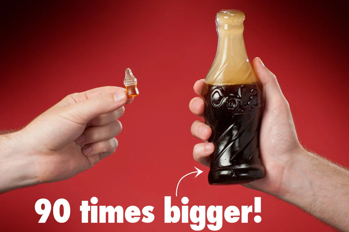 The Giant Gummy Cola Bottle is an amped-up version of a classic candy treat. Weighing approximately 90 times more than the standard-size gummy cola bottle, The Giant Gummy Cola Bottle perfectly mimics the styling of a traditional glass soda bottle.