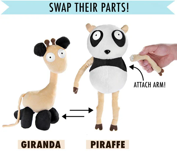 Collect the plush toys to form fun combinations like you're the Dr. Frankenstein of plush. You could end up creating a Panbataraffephant!